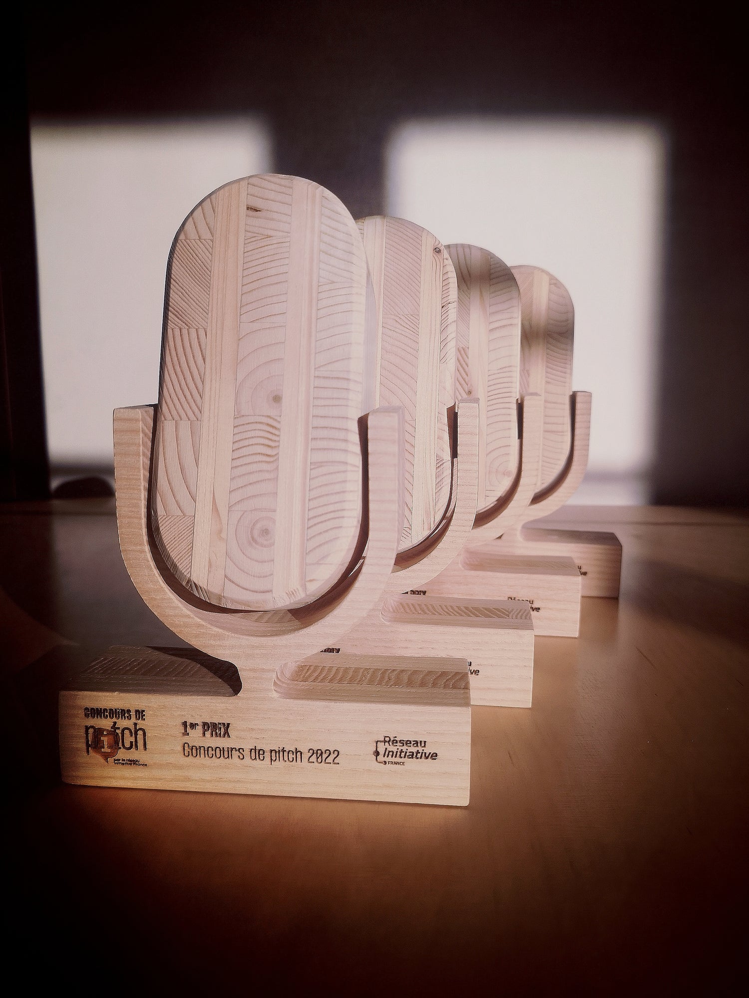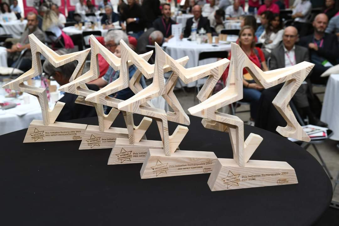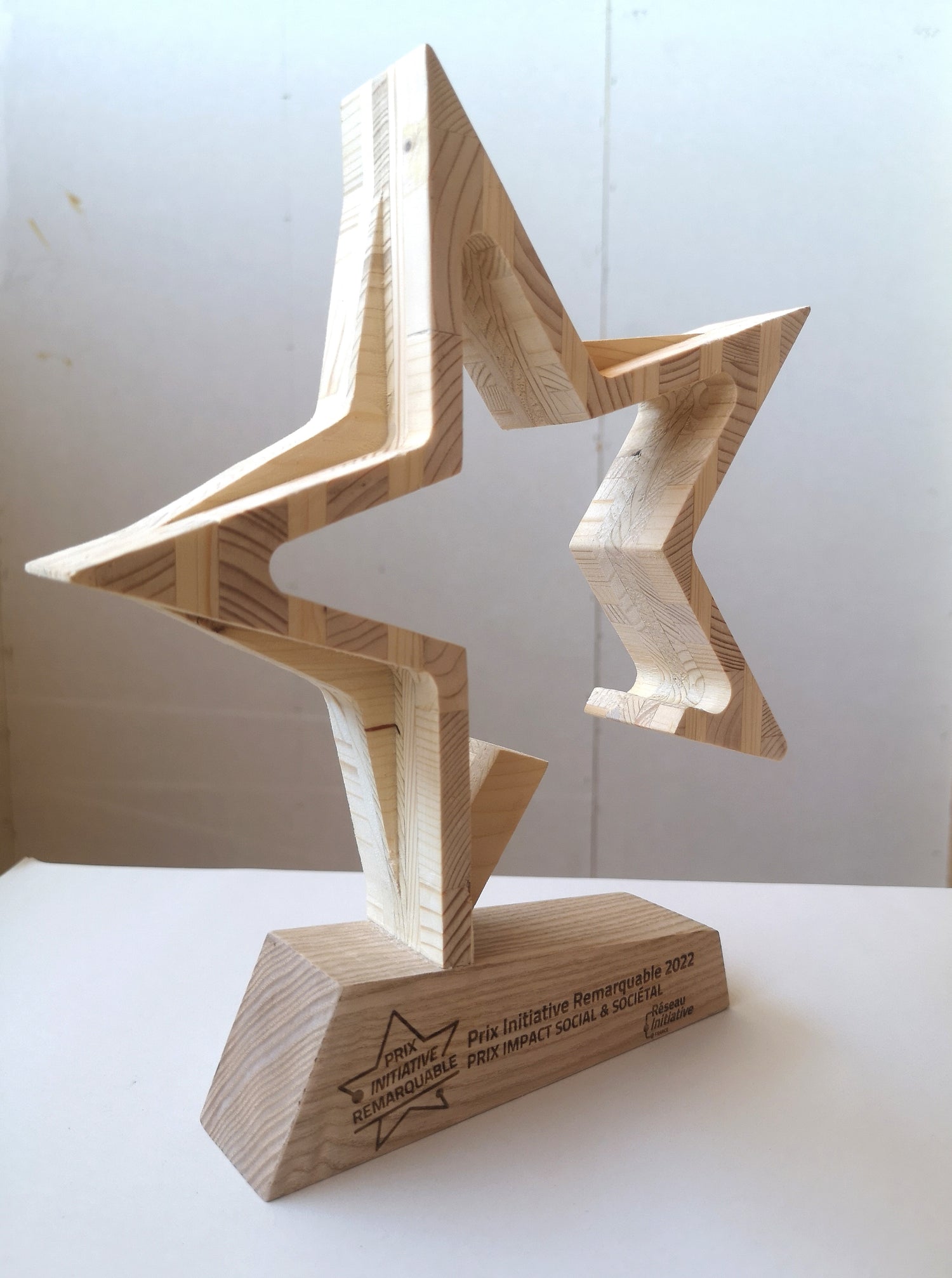 Ces trophées en étoile répondent à la demande d’Initiative France qui souhaitait décliner leur nouvelle identité graphique dans un objet incarnant leurs valeurs de responsabilité sociale et sociétale.
