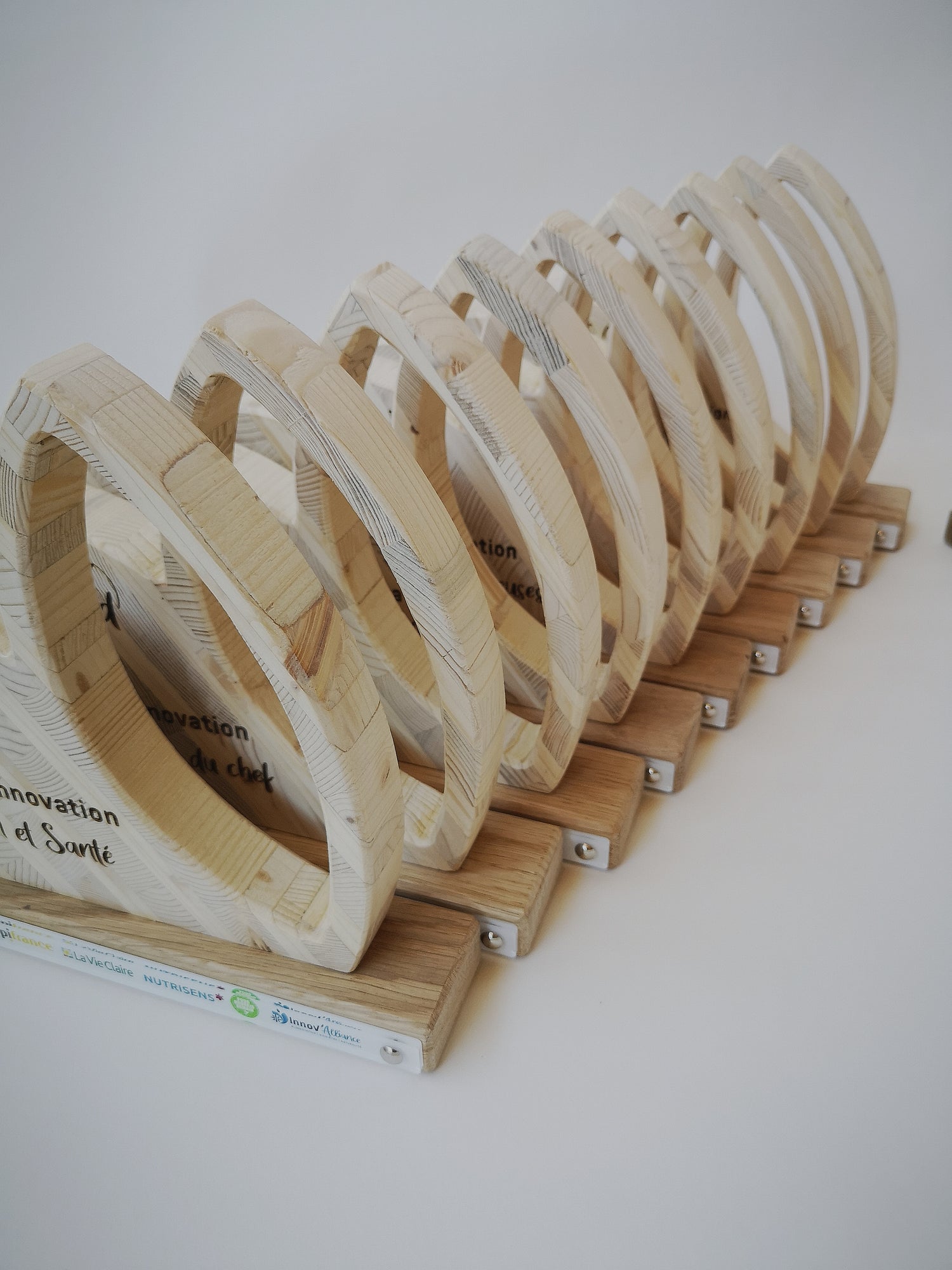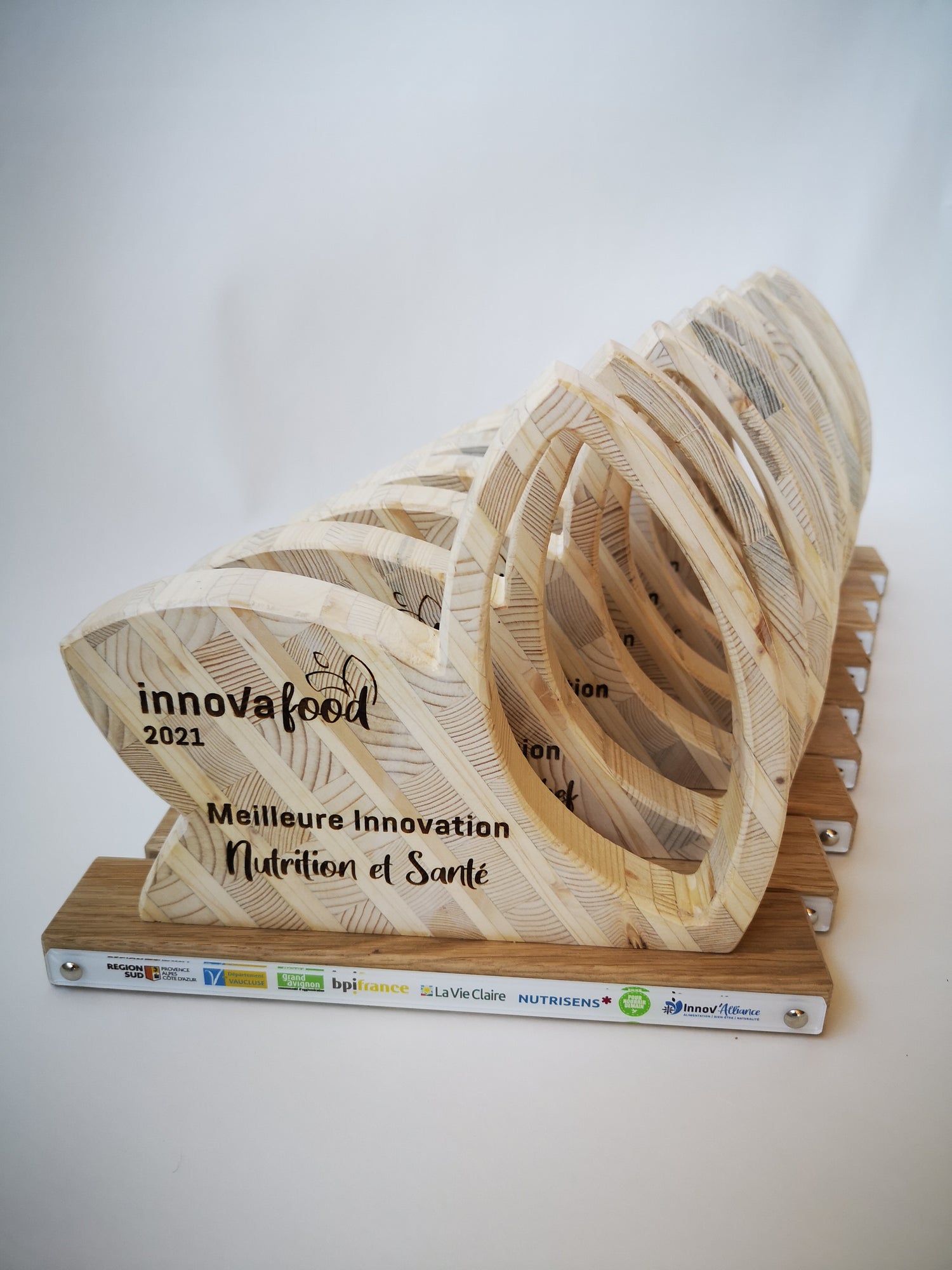 Ces 3 trophées "award" réalisés en bois YD-WOODS mettent en lumière les innovations culinaires qui se soucient d'une consommation végétale, saine et naturelle.